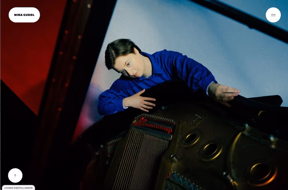 Die webflow-Website wird modern und dynamisch. Dezent eingesetzte Gradient-Farben, die gerade im Trend sind und effektvolle Übergänge sollen den spritzigen und kreativen Charakter der Musikerin unterstreichen, die den Fokus ihres Schaffens auf Neue Musik legt.